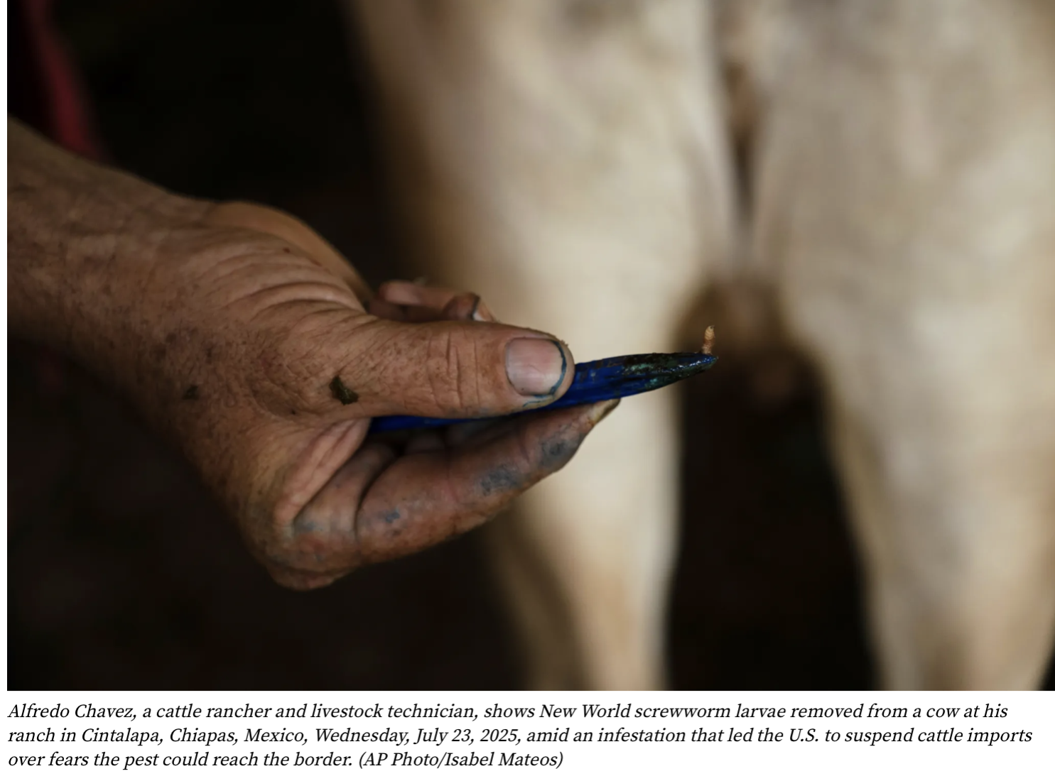 This comes as Mexican officials this week announced that a second case of New World screwworm has been found in a cow in the northern Mexican border state of Nuevo León.
