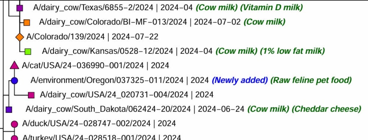 Back in California, the LA county Public Health Department released the following on December 24th after the Oregon finding: Public Health Warns Against Feeding Pets Raw Food Following H5 Bird Flu Virus Detection. California officials continue to investigate the deaths of several cats from at least 2 households without known exposure to raw milk and current undocumented exposure to raw food sources.